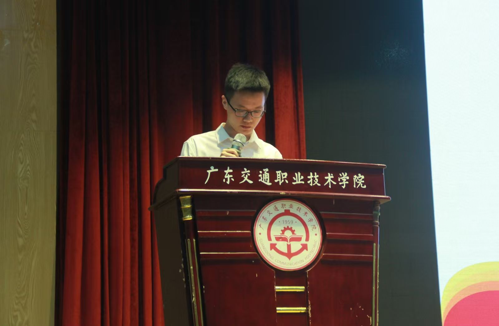 “星级宿舍”获奖代表、2023级城市轨道交通运营管理3班徐炜城分享如何在宿舍中构建和谐的生活环境。一是遵守学校规定的各项规章制度;二是建立宿舍公约:人人参与、人人遵守;三是分工明确:宿舍成员要团结合作,合理分工。