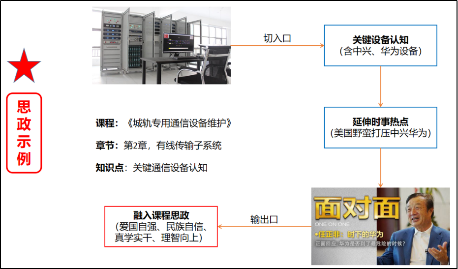 第二章有线传输子系统主要以四个子任务的形式,包含理论知识与维护实践等相关内容,其中课程思政的引入是在任务2关键传输设备认知,以有线传输系统中的中兴、华为关键设备为切入点,引出与此相关联的中美科技摩擦事件,融入爱国自强、民族自信、真学实干、理智向上等思政内容。
