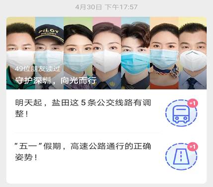 4月30日,深圳市交通运输局官方账号“深圳交通”发起“他们为深圳守卫春天,让我们为他们摘下口罩”的活动,其中,我校轨道交通学院2019届毕业生、来自16城市轨道交通运营管理3班、现任香港地跌(深圳)有限公司4号线站务员的李宇宙赫然在列。