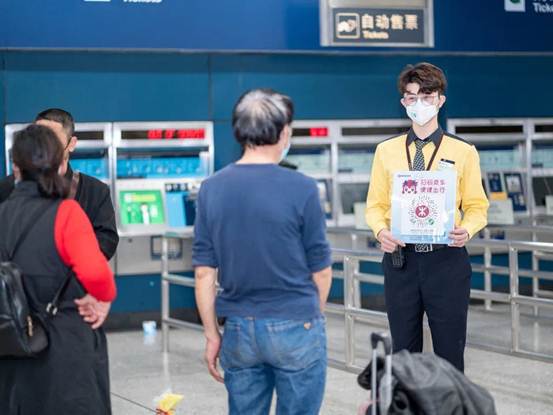 性格温和、彬彬有礼的李宇宙,是关键时刻勇于挺身而出青春少年。有一次乘客在过安检时被安检工作人员用体温枪测到的体温高于37.3摄氏度,安检员报告了值班站长,在做好个人防护的情况下,李宇宙穿上防护服和防护鞋,带上护目镜和一次性手套,第一时间到达现场。根据相关工作守则,他用体温枪给高温的乘客测体温,隔几分钟测一次,并登记好乘客的信息。当经多次测量后体温还是偏高,他通过对讲机报告值班站长通知120。业务娴熟的他,送离高温乘客的过程中做好乘客安全距离的指引,并监督好现场消毒工作。