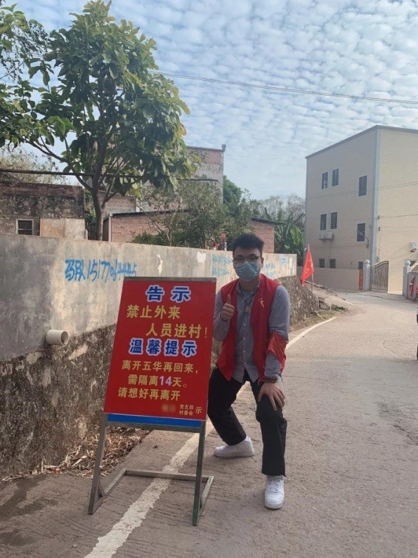 17机电1班的范淑泉同学,是轨道交通学院分团委学生会文体中心文艺部的一名干部,防疫期间在梅州市五华县横坡镇的一个乡村当志愿驻守人,排查来往车辆和人员。作为正处于国家危难时刻的一位青年,他很自豪有这一个机会为国家奉献出自己的绵薄之力,为他的小村落奉献自己的一份力。他在这次疫情服务当中,最深刻的体会是:当国家发生危难时人民就是国家最坚强的后盾。保护祖国,人人有责。武汉加油!中国加油!