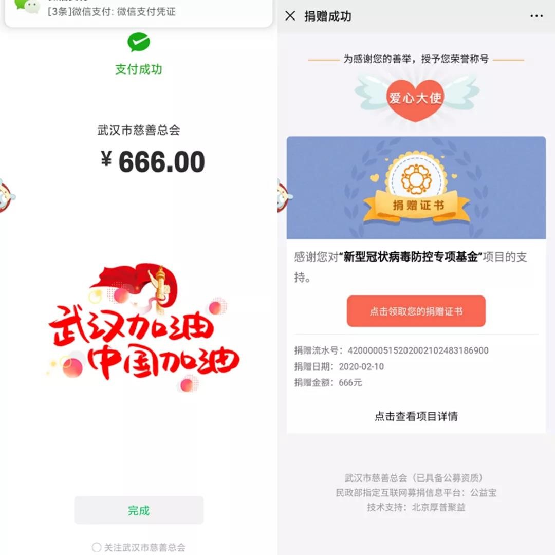 捐款渠道:武汉市慈善总会、武汉市红十字会