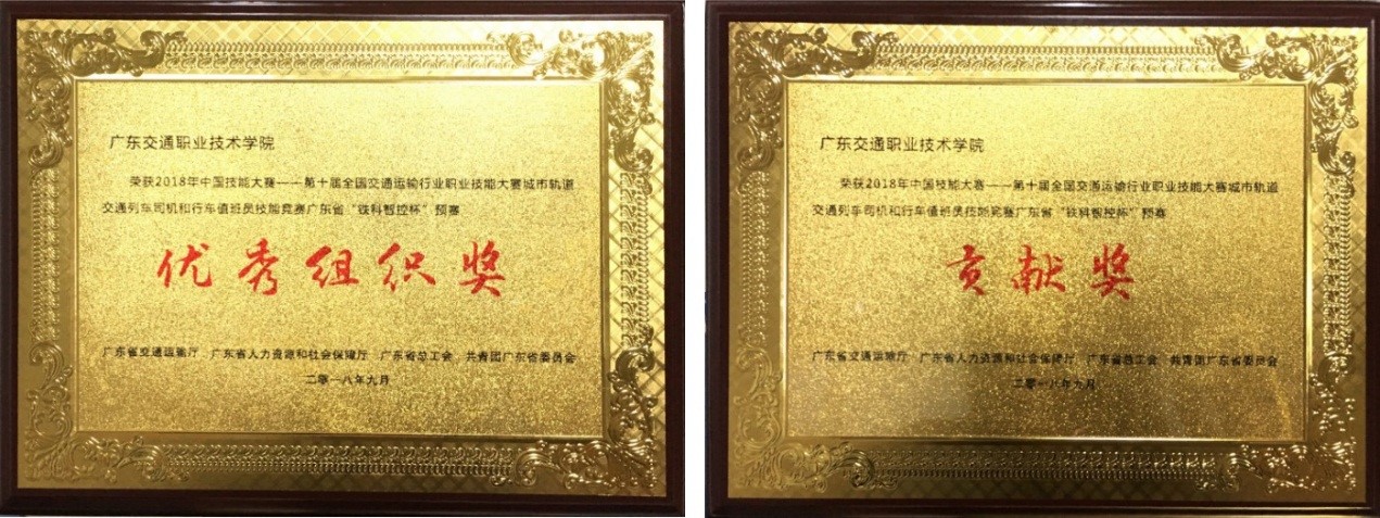 9月29日下午,大赛闭幕式及颁奖典礼在广州地铁博物馆隆重举行。学院副院长刘越琪带领轨道交通学院师生代表参加了闭幕式。闭幕式上,学校荣了2018年中国技能大赛——第十届全国交通运输行业职业技能大赛城市轨道交通列车司机和行车值班员技能竞赛“广东省铁科智控杯”预赛“优秀组织奖”和“贡献奖”两项荣誉。