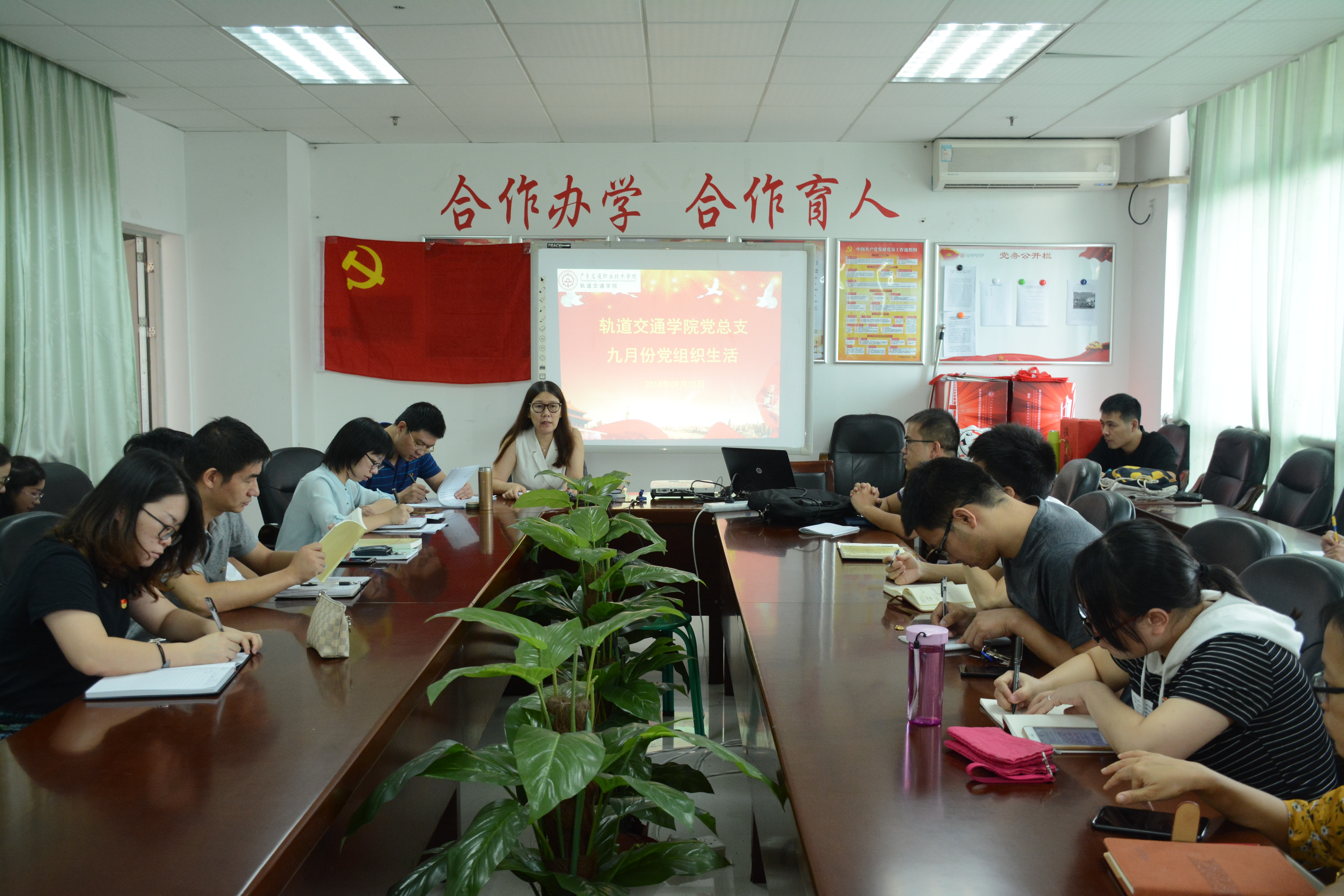 2018年9月20日下午,轨道交通学院在会议室召开了党总支全体党员会议,会议由轨道交通学院党总支书记吴璇华主持,学校副院长邓子胜和轨道交通学院党总支全体教工党员参加了会议。