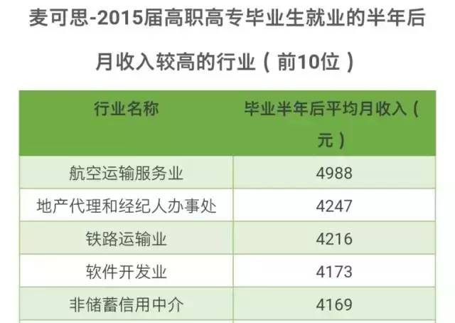 根据麦可思-中国2015届大学毕业生培养质量跟踪评价,城运专业所属的铁路运输业毕业半年后平均月收入为4217元,排在第3名,如下表所示: