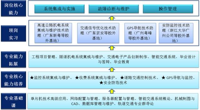 接下来,我们来看看需要学些什么本领。主要学习电子类,计算机网络类等专业技术平台课,熟练掌握《监控系统集成与维护》、《收费系统集成与维护》、《道路交通控制技术》、《GPS导航与监控》、《安全防范技术》等5门专业核心课程,同时还开设了工程项目管理等专业拓展课,专项训练,毕业设计,从第6学期开始就到各个合作单位进行顶岗实习。李克强总理都说过,学好技术走遍天下都不怕,哈哈,您懂的。