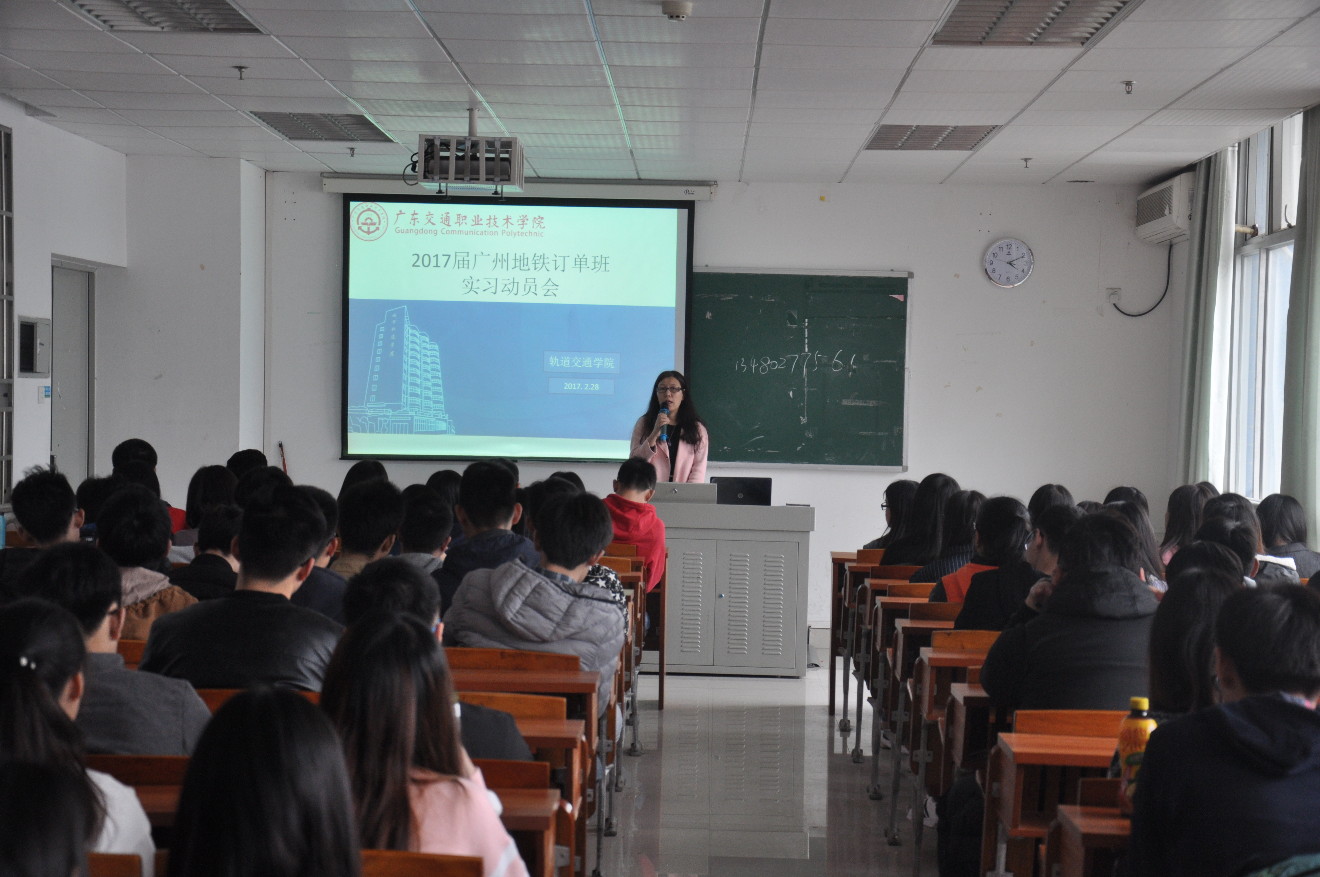 2017年2月28日下午,学院在轨道楼203课室召开2017届广州地铁订单班实习动员会。轨道学