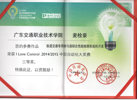 2016全国职业院校技能竞赛“城市轨道交通运营管理与维护”广东省三等奖