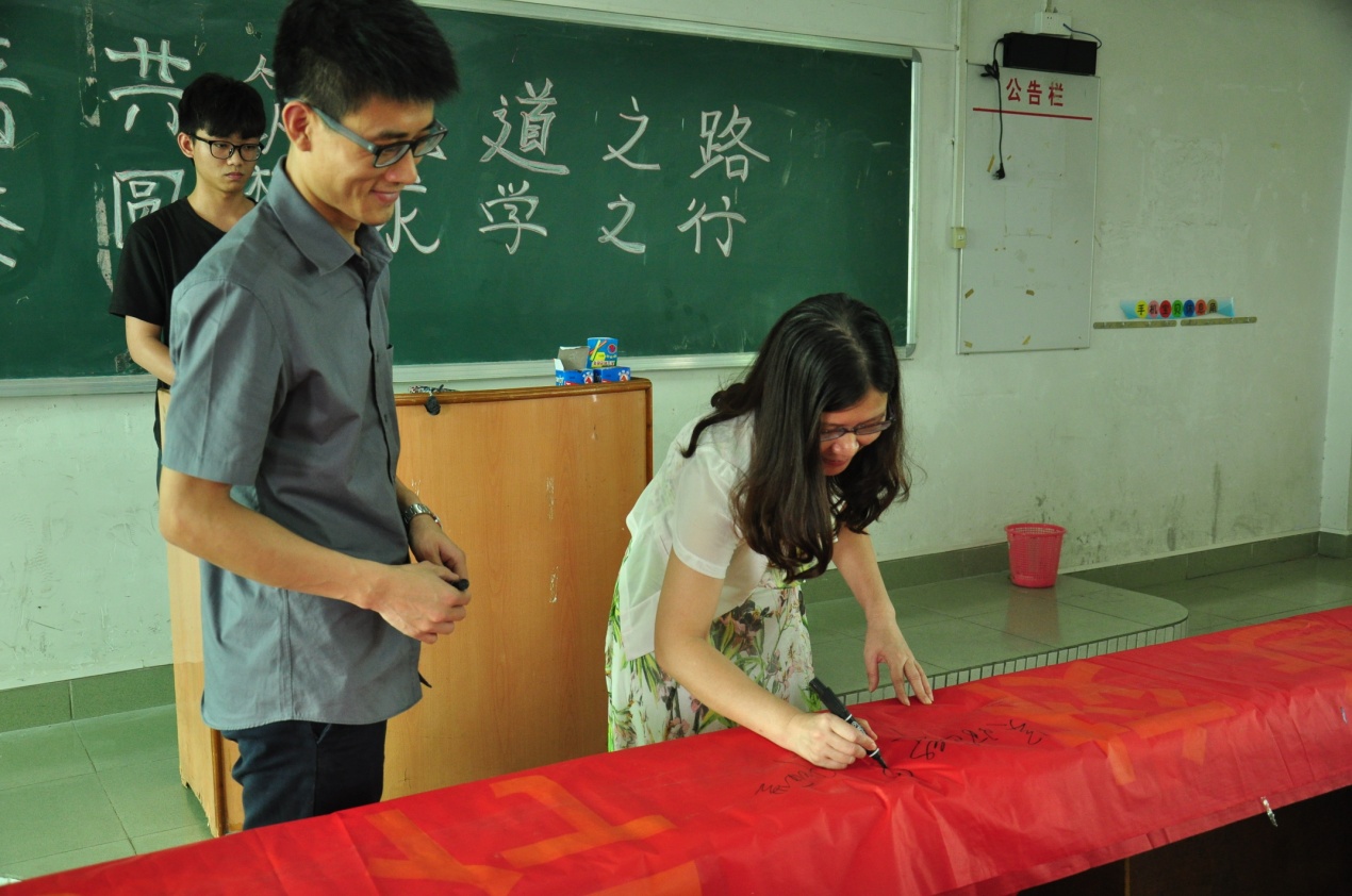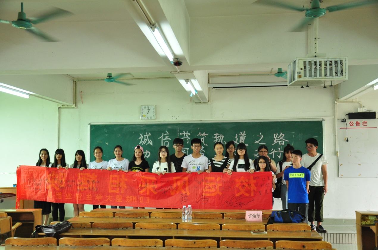 会议后,吴璇华书记、许焕坚老师以及同学们在横幅上签字并合影留念。相信诚信之风定能吹拂在你我每个人的心里。