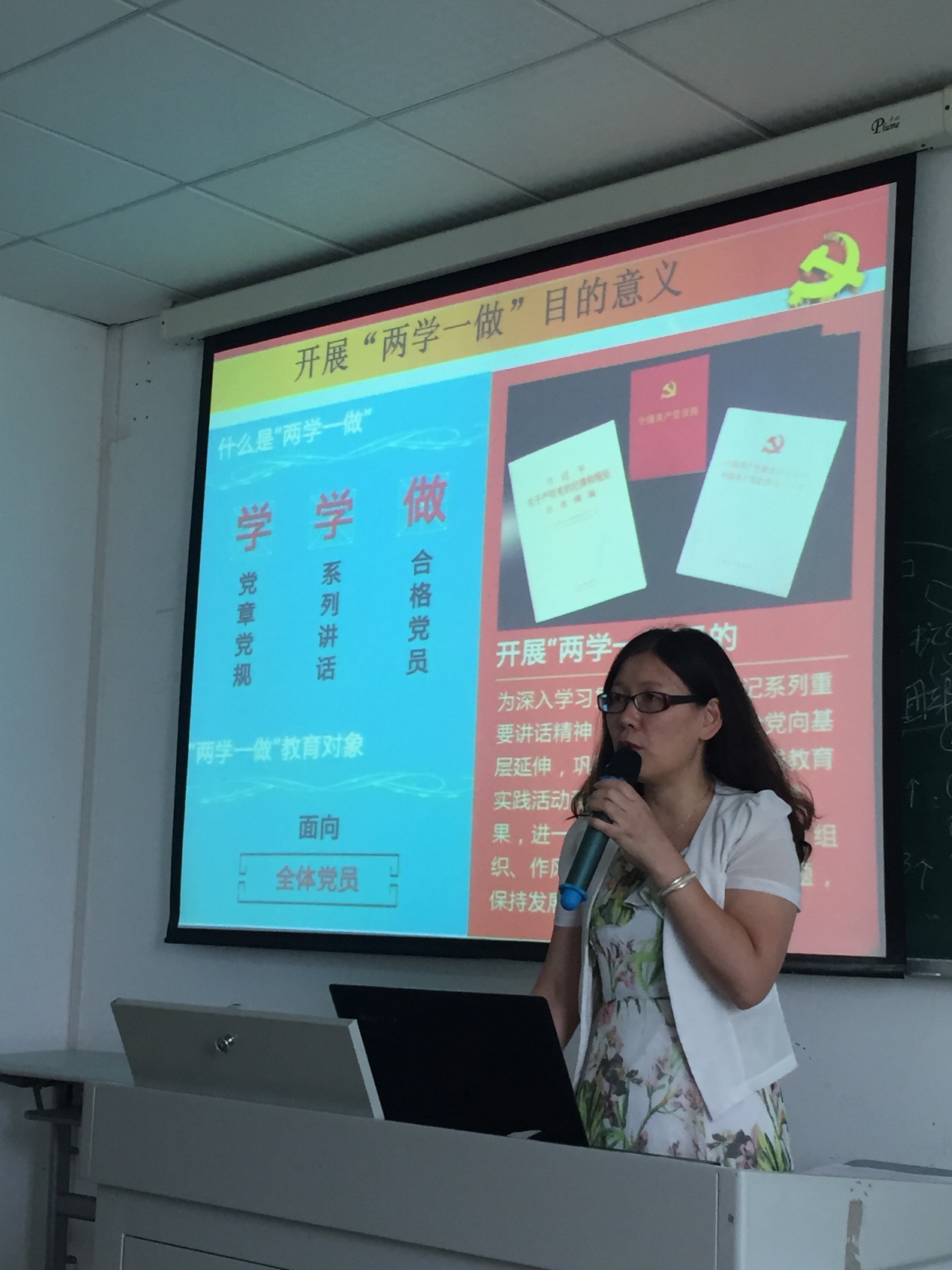 按照学校党委“两学一做”有关工作安排和要求,6月6日下午,轨道交通学院党总支书记吴璇华在轨道楼203为教工党员和学生党员作《两学一做,以知促行》的专题党课。