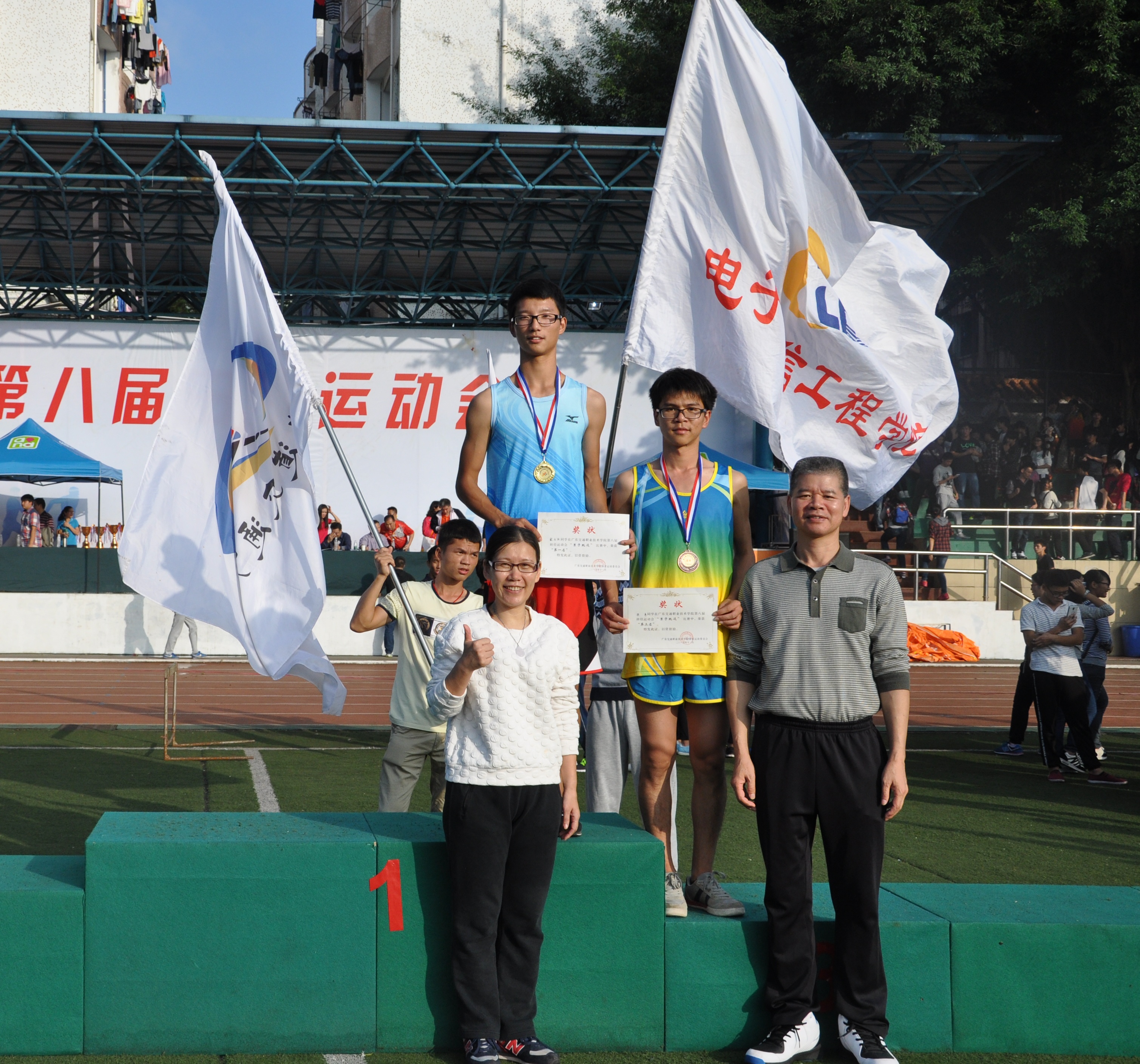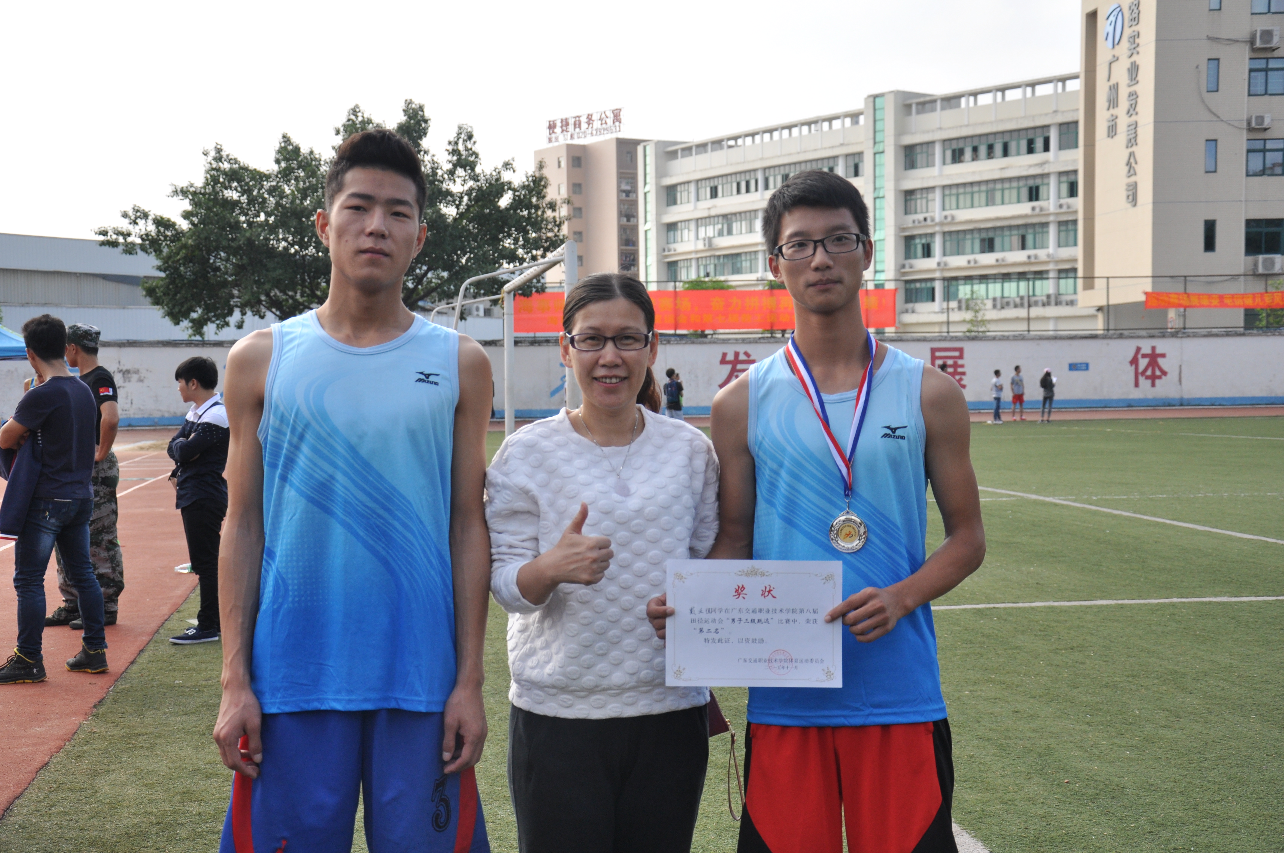 本届田径运动会,你们用行动证明,没有无尽的终点,没有无法攀登的险峰,只要你毫不动摇地坚持下去!你们爆发青春的能量,留下热血的一搏,懵动同学那力争上游的奥林匹克运动精神!