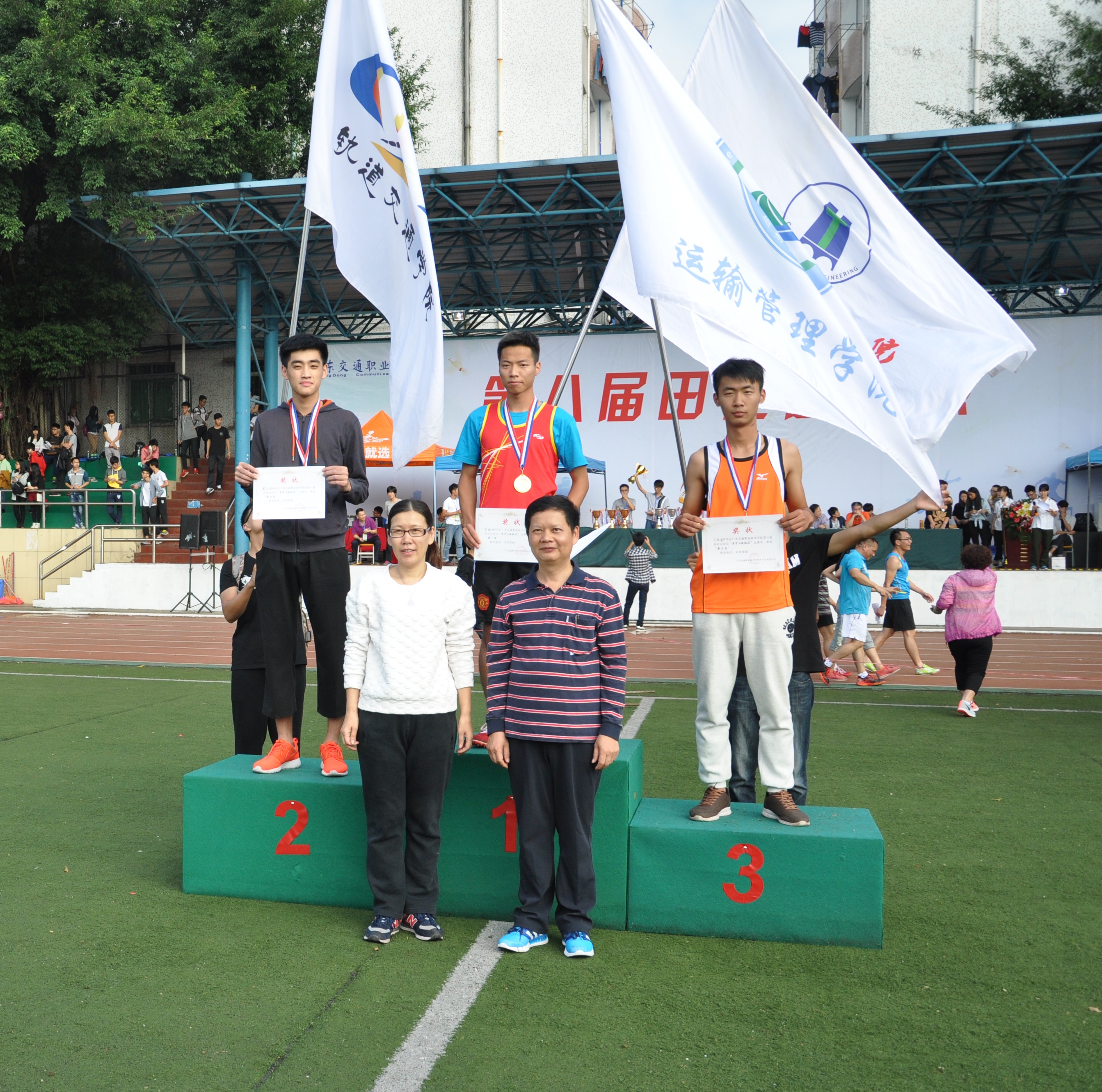 2015年11月13,14两日,广交在南校区的绿茵足球运动场顺利举办为期两天的第八届田径运动会,参赛的不仅有9个学院学生运动员代表,还有校内的教职工运动员代表。