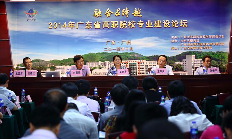 10月31日,2014年广东高职院校专业建设论坛在广州举行。广东省教育厅高教处调研员吴念香、广东省高等职业技术教育研究会会长王乐夫、麦可思研究院院长王伯庆、广东交通职业技术学院院长张俊平等领导和专家出席论坛。来自全省高职院校的领导和省级重点专业负责人共200余名代表受邀参加了论坛。