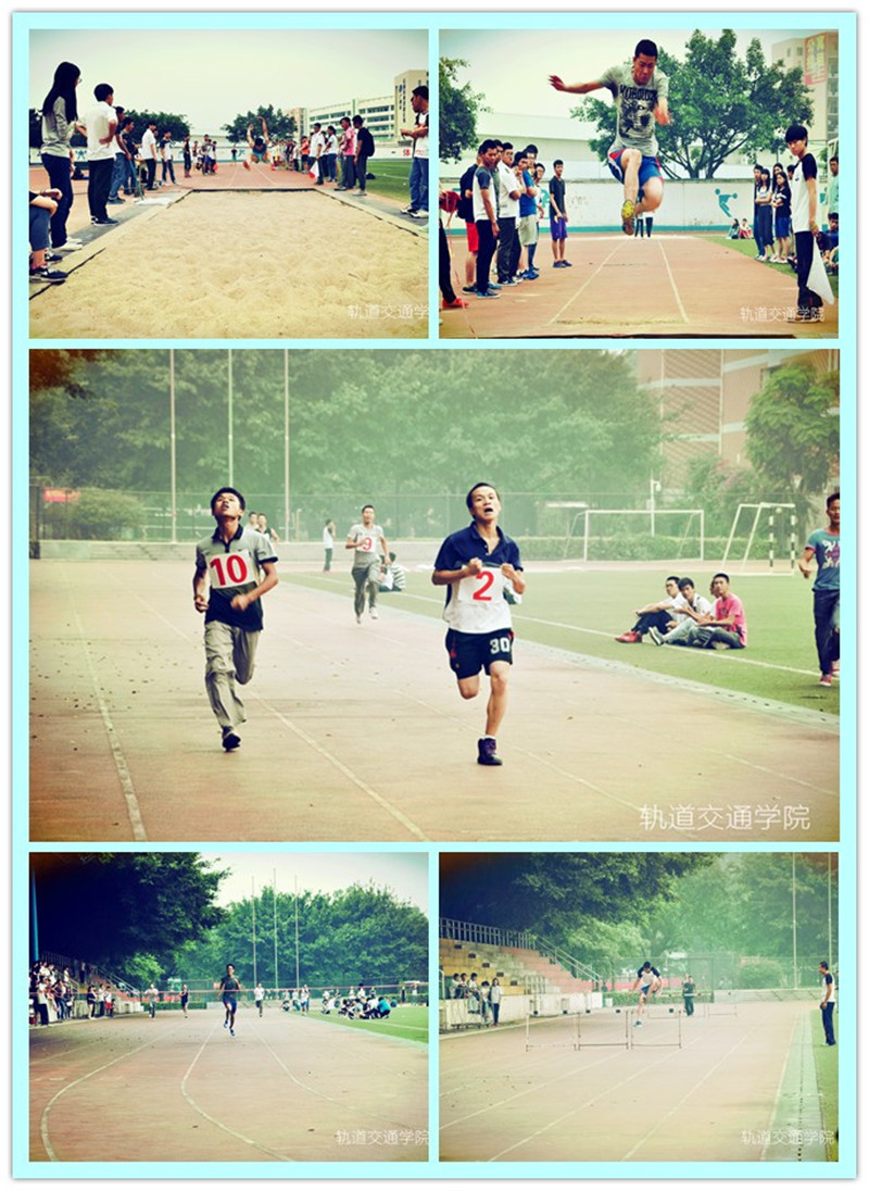 2014年10月26日,我院为迎接校运动会的到来,积极备战,在南校区足球场举办2014年度轨道学院运动会选拔赛。运动会选拔赛历时一天,全院309名爱好运动的同学报名参加了选拔赛。赛场上,我们挥洒汗水;运动场上,我们绽放激情;大学校园里,我们激昂青春!