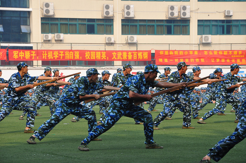 2014年新生军训历时15天,新生军训活动系统且严格。各连根据本连新生情况,制定不同的训练方案。汇报演出当天,各连方阵均表演不同项目。我院的尖刀营方阵以过硬的技术,蓬勃的朝气获得了领导老师的广泛好评。(文、图/颜晓萌、学生会)