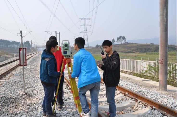 二十五局一公司柳州项目部,负责新建湘桂铁路VII标段的铺轨工程,目前进入高铁施工的轨道检测、一次、二次粗调工作,需要采用近些年才发展起来的“自动全站仪配合轨道检测小车作业”技术。由于时间紧、任务重、技术要求高,柳州项目部希望轨道学院予以支持,这对轨道工程、高速铁道技术专业学生来说,是一次难得的,在实际工程中进行专业新技术学习与培养“铺路石”品格的好机会。