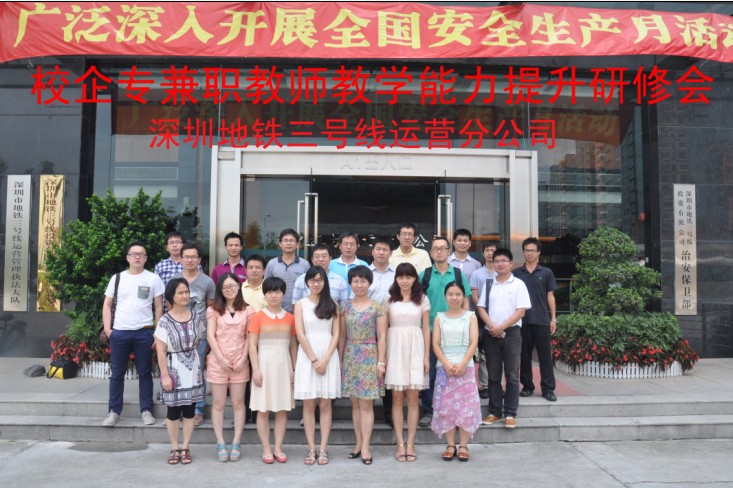 2013年7月6日,城市轨道交通学院在深圳市地铁集团有限公司三号线运营分公司,召开了“专兼职教师教学能力提升研修会”。深圳地铁的人力部、维修部、车务部、车辆部等部门经理、工程师和轨道学院部分教师代表,参加了本次研修会。