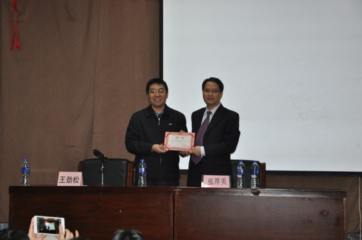 讲座开始前,王劲松院长代表学院聘请张厚美博士为我院客座教授,并举行了简短的客座教授聘书颁发仪式。张厚美教授2000年毕业于上海同济大学地下建筑与工程系,获工学博士学位,是注册一级建造师、注册安全工程师,参加过广州市轨道交通二、三、四、五、六号线等多个盾构工程施工项目,在一线从事岩土工程、盾构隧道工程施工、管理工作10余年,曾获得广东省科学技术奖二等奖、广州市科学技术奖一等奖等多项奖项,出版《盾构隧道的理论研究与施工实践》专著1部。2010年4月被广东省总工会授予“广东省五一劳动奖章”;2012年4月被广州市人民政府评为“广州市劳动模范”。
