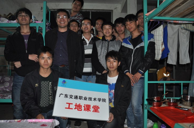 根据校企双方协议,轨道学院将2011级城市轨道交通工程技术专业(1)、(2)班为期一个月的校内整周专业实习与广西贵港工地的轨道铺设工程项目相结合,2012年11月24日由王劲松、江红兵两位老师带领13名学生,开展了“工地课堂”教学活动。
