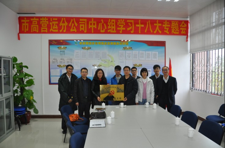 为更好加强和促进学生流动党员管理教育工作,探索流动党员管理教育新机制和组织活动新形式,充分发挥学生党员在实习单位的先锋模范作用。2012年12月20日,城市轨道交通学院党总支书记吴璇华、李怀俊主任、余德维老师前往广州市高速公路营运分公司,为校企共建流动党员党支部挂牌。