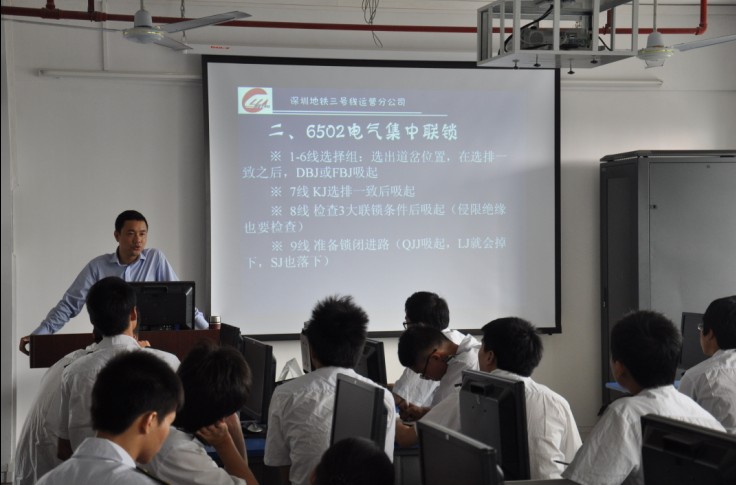 2013届地铁订单班,共分为站务管理、通信信号机电维修、线路维修三个方向大班。罗海彬副部长给“站务管理订单班”讲授深圳地铁站务运作、OCC中心运作等专业知识;宋海峰经理、文滨工程师给“通信信号机电维修订单班”讲授深圳地铁通信信号体系、维修有关规定和专业技能;李冕梧副经理给“线路维修订单班”讲授深圳地铁线路维修有关规定和专业技能。