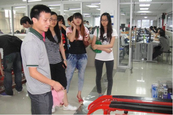 2011年6月14日、16日上午广州科贸职业技术学院轨道交通运营管理专业陈淑慧老师和许争艳老师带领学生80余人来到我院校内实训基地——轨道交通技能训练中心,开展“教学做”一体化教学。