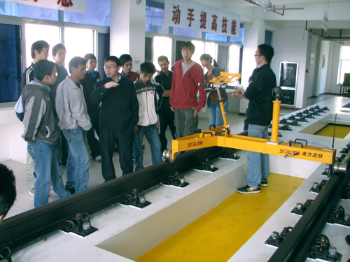 2009年12月1日,我学院08路桥5班(轨道方向)全体学生在新建成的城市轨道工程实训室上了一节生动的板式轨道施工观摩实验课。这既是对学生专业理论知识掌握程度的系统检验,又是提高学生解决实际问题与动手能力一堂课。