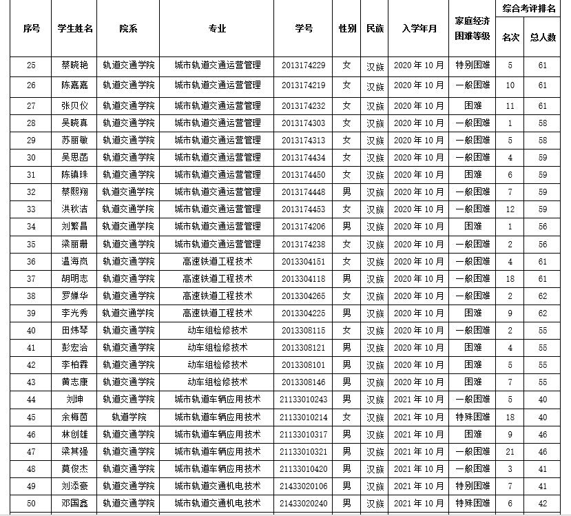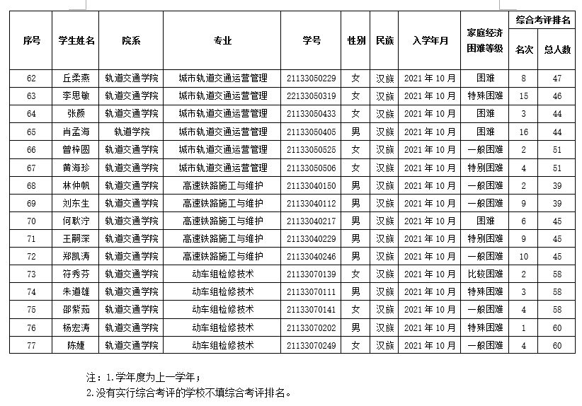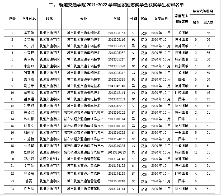 关于公布拟获轨道交通学院2021-2022学年
