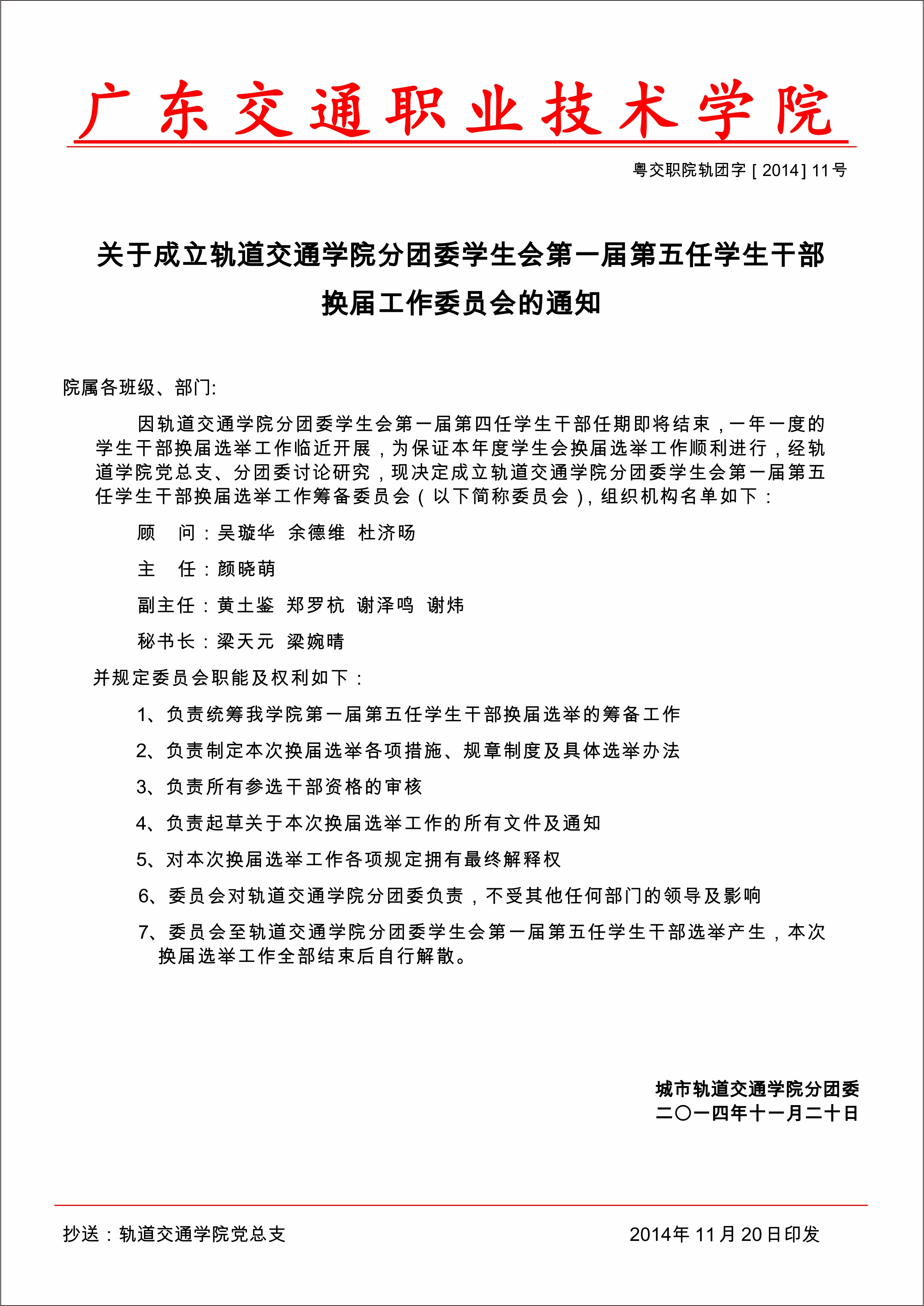关于成立轨道交通学院分团委学生会第一届第五任学生干部换届选举筹备工作委员会的通知