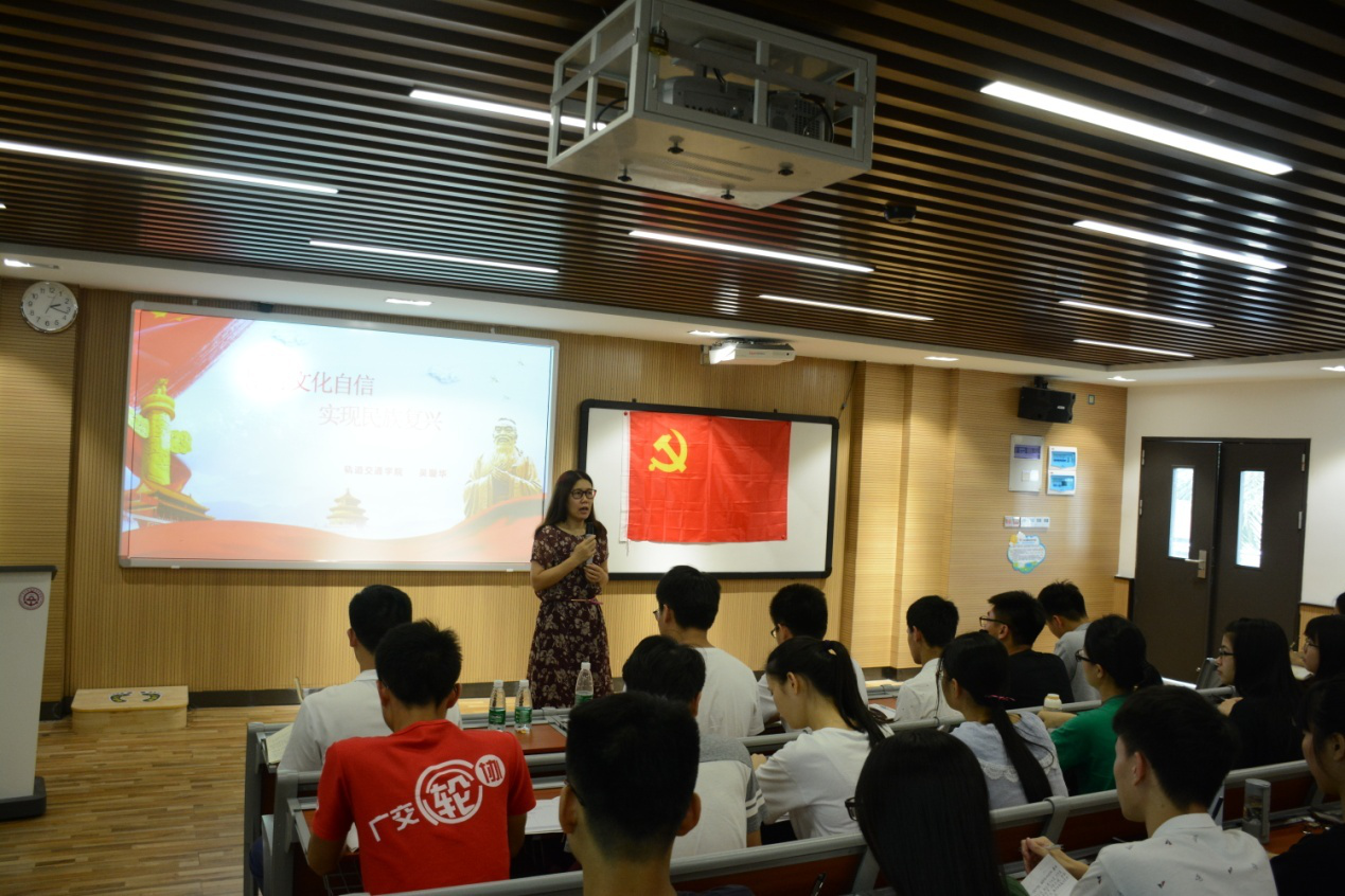 轨道交通学院为深入贯彻落实十九大精神,引导学生学习习近平新时代中国特色社会主义思想,树立远大理想,坚定“四个自信”,5月28号,轨道交通学院党总支书记吴璇华在2栋301为学院全体学生党员和学生会干部上党课。