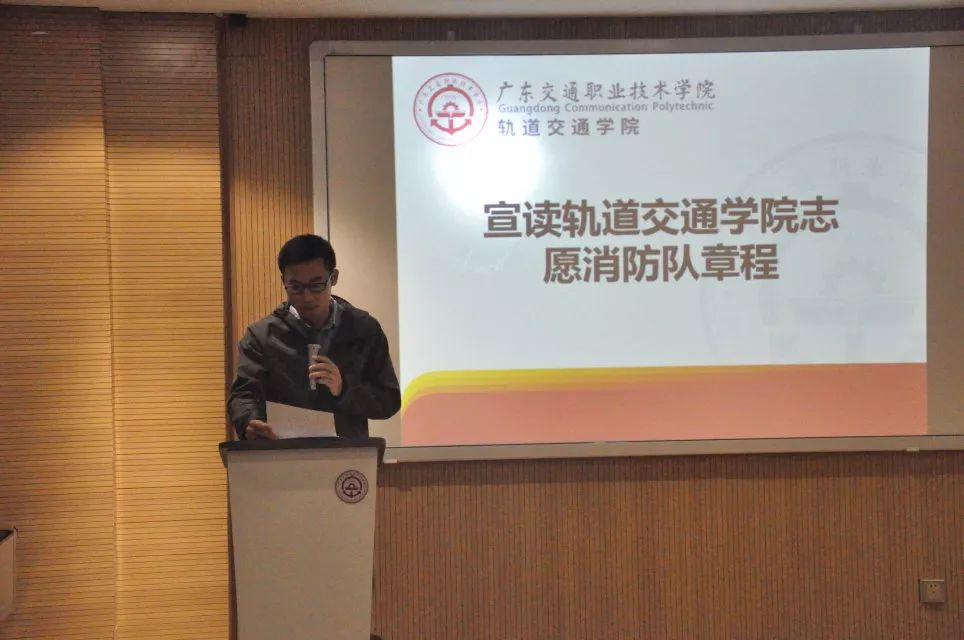 紧接着,王铿崎老师为大家宣读志愿消防队组织架构,增强我院学子的消防安全意识,提高学生的自防自救能力。成立志愿消防队能更好地维护大学校园安全、促进大学生活和谐美好,有效保障全校师生的生命安全。