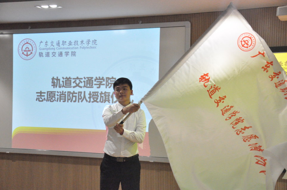 最后,志愿消防队代表发言,表达自己对志愿消防队的决心,吴璇华书记对其举行庄严的授旗仪式。