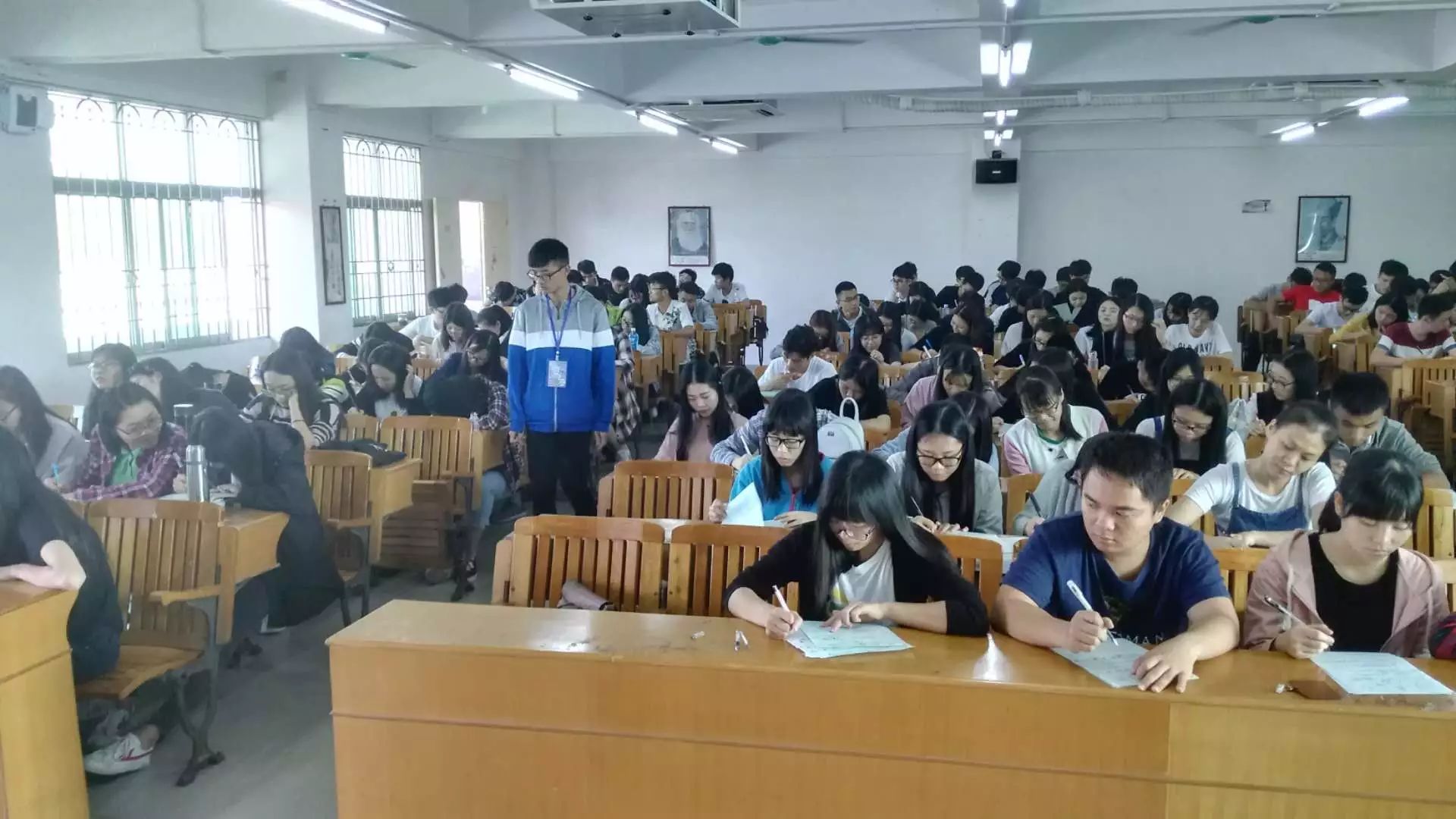中国汉字听写大会初赛在2栋801,802,505三个课室同时举行,参赛者以笔试的形式进行角逐,比赛时间为2个小时。为了保证比赛的公平性,我们派出多名工作人员在考场监督参赛选手的作答并且严禁选手使用手机,确保比赛公平公正。在本次初赛中,参赛选手们认真作答,没有出现考场作弊的现象,初赛顺利完成