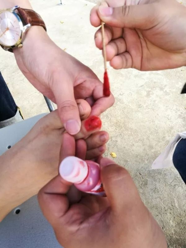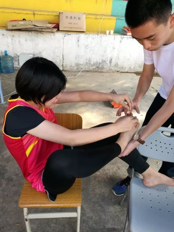 暖心的轨院同学小心翼翼的帮助师姐包扎伤口,小编感动的同时也希望师姐的伤口快快好起来哒!最后小编也在这里给这位师姐献上一束花,感谢对轨院无畏伤痛的付出。