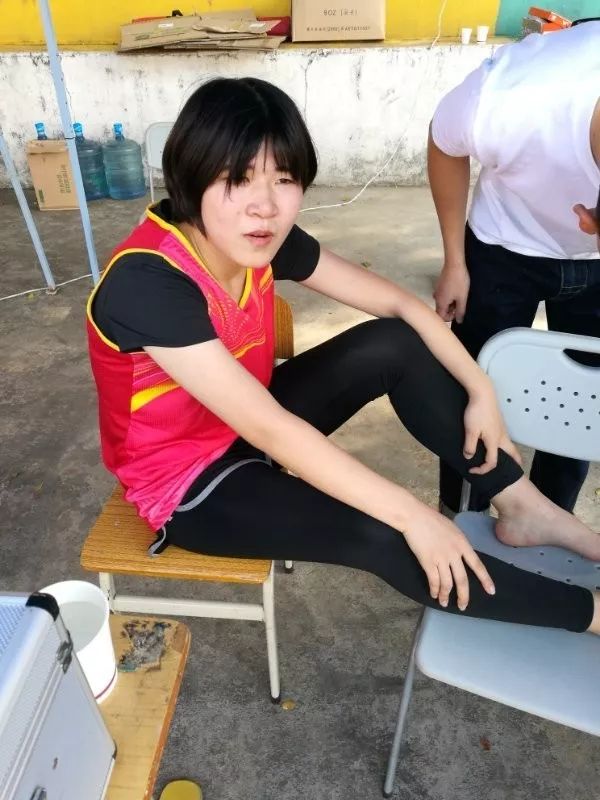 桂柯柯同学在负伤后坚持跑完女子1500米,在工作人员陪同下去医院打封闭,第二天继续坚持参加女子800米、女子4*100接力赛,女子4*400接力赛。