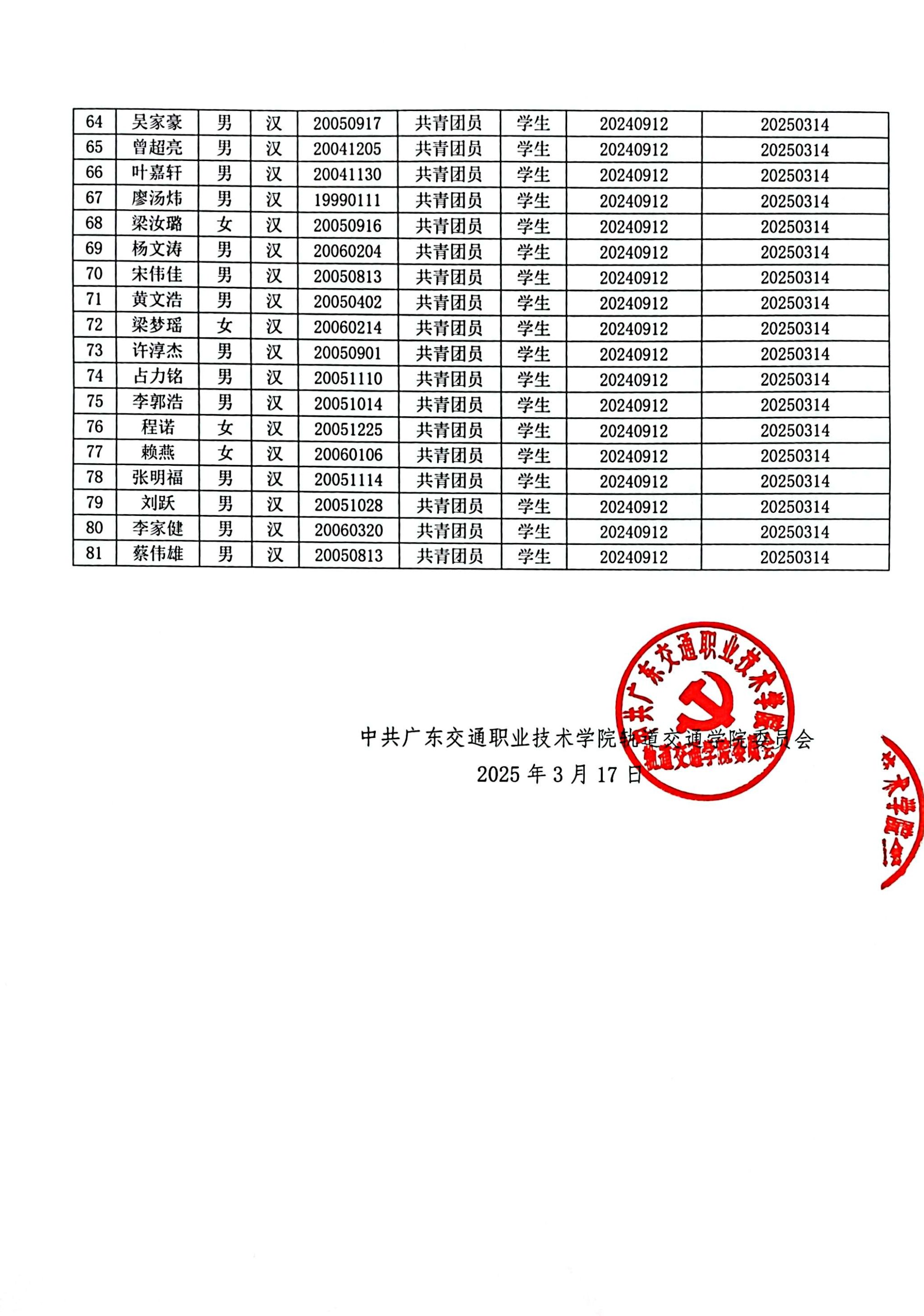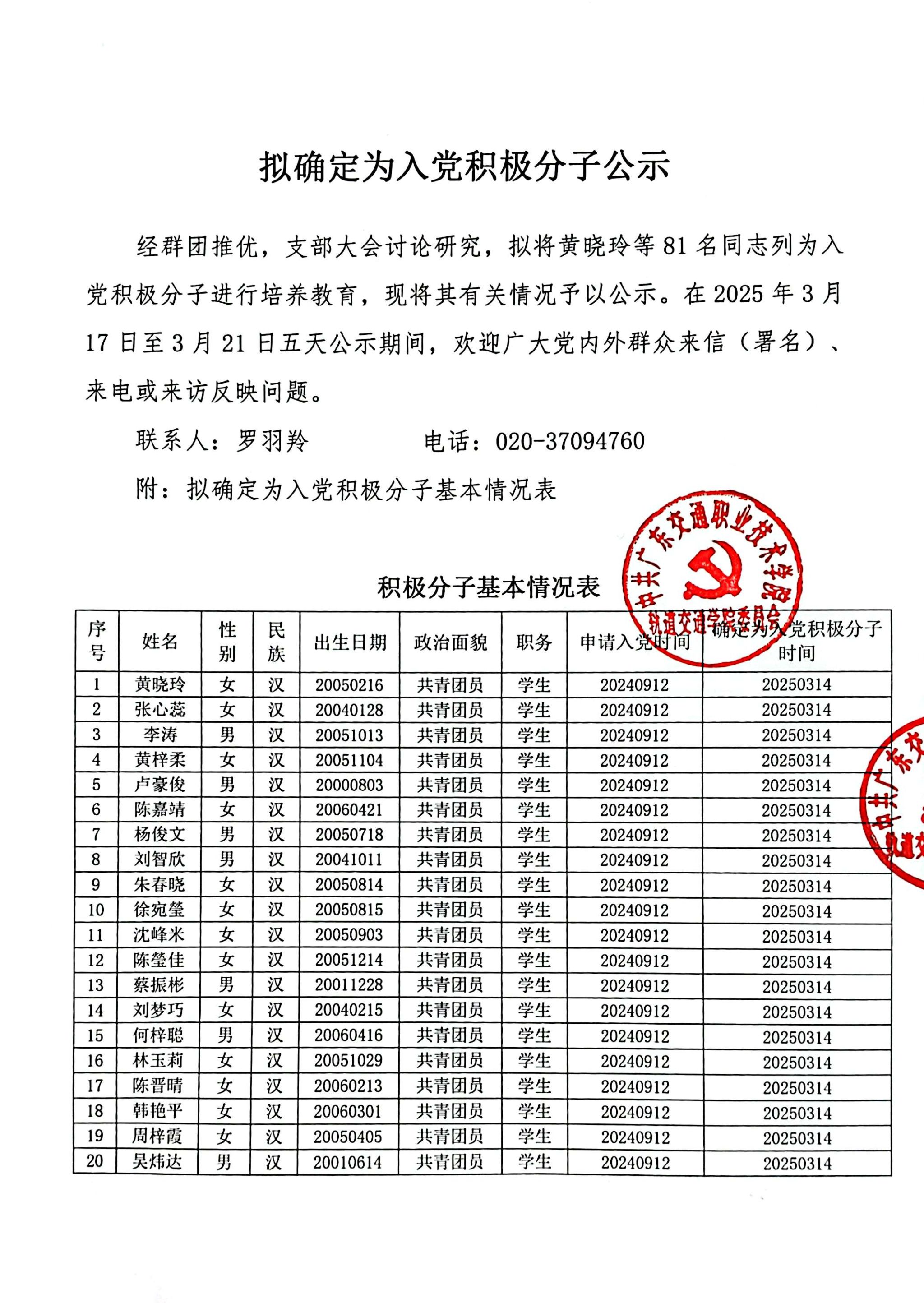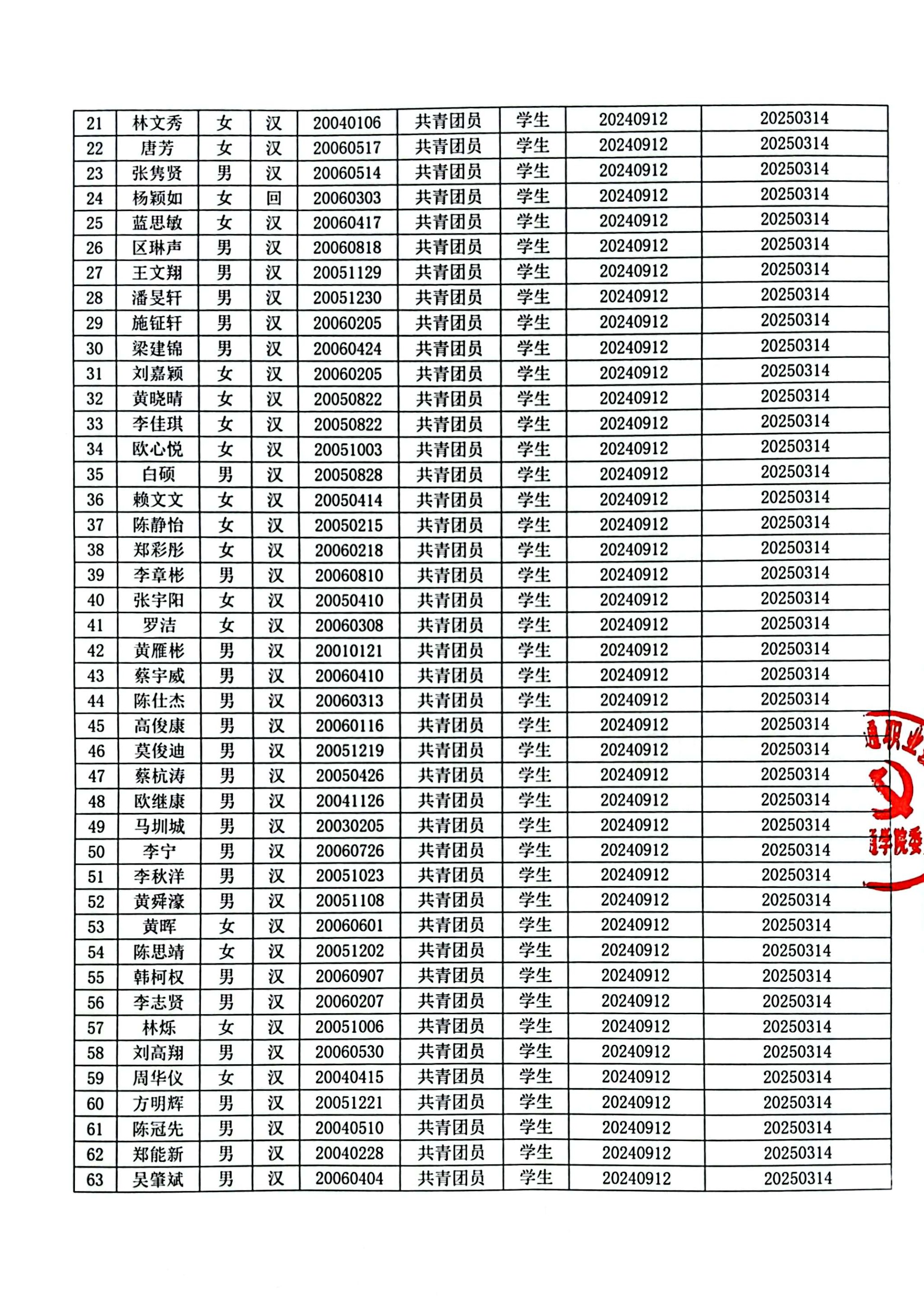 2025年上半年拟确定为入党积极分子公示